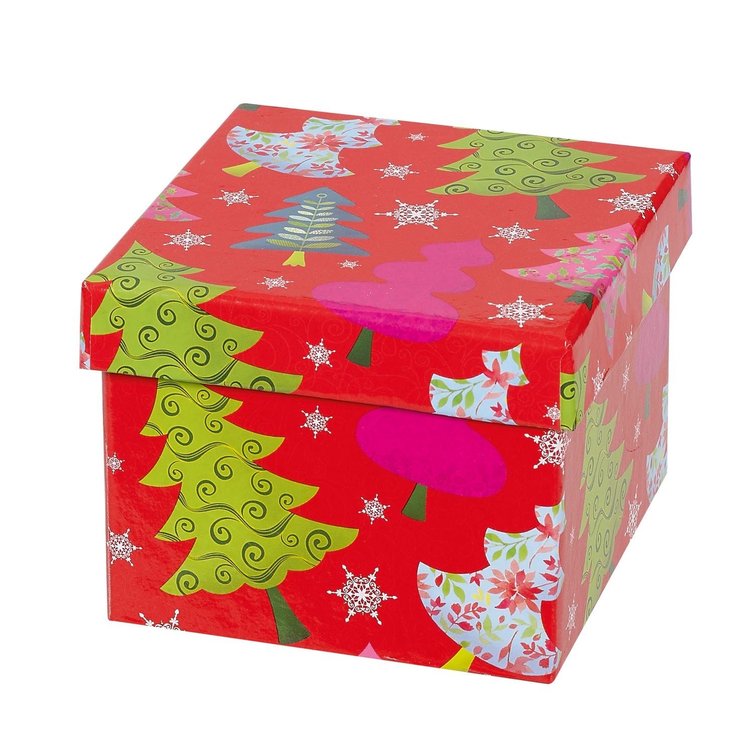 2 tier tower of rigid boxes - red with tree design
